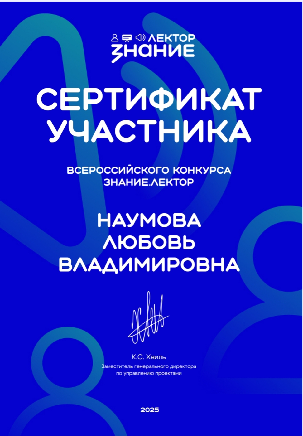 - Автор Российского Общества "Знание", участник проекта "База Знаний", с июня 2025 г.;