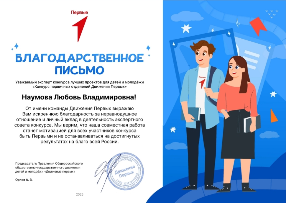 - Участник XXII Всероссийского конкурса молодежных авторских проектов и проектов в сфере образования, направленных на социально-экономическое развитие российских территорий, "Моя страна - моя Россия" - 2025 г.;